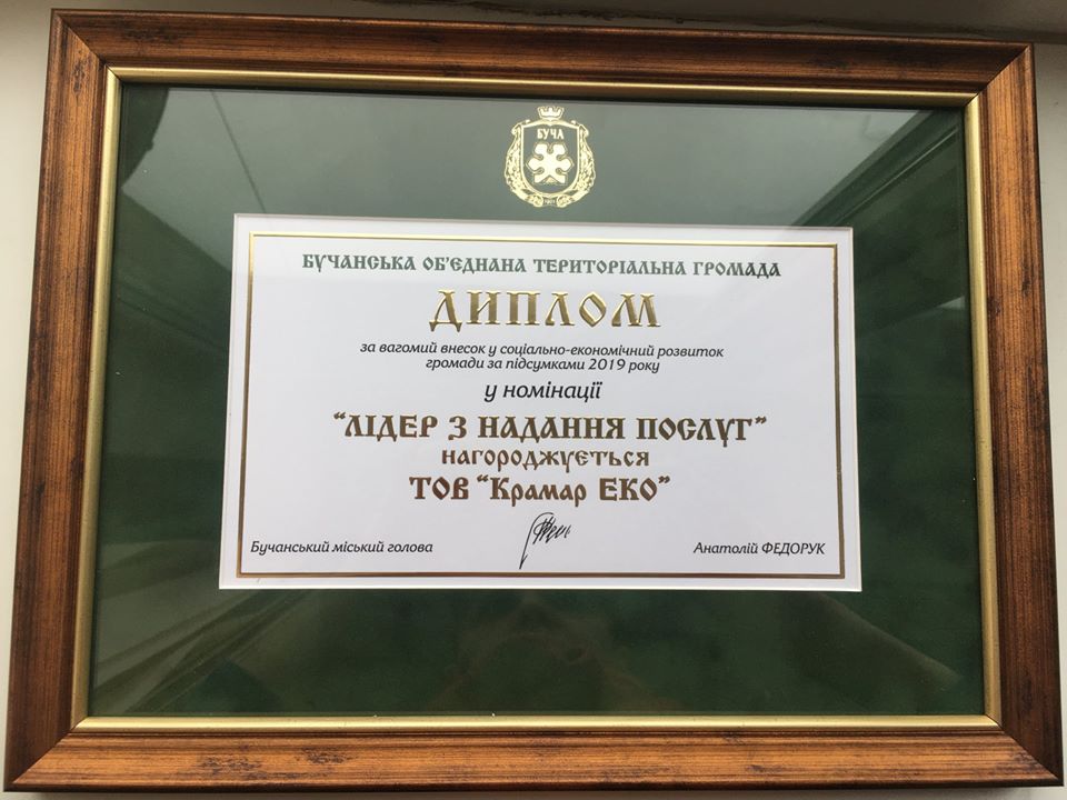 В 2019 году общество с ограниченной ответственностью «Крамар ЭКО» было выбрано исполнителем услуг по вывозу твердых бытовых отходов в городе Буча.