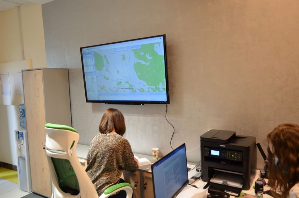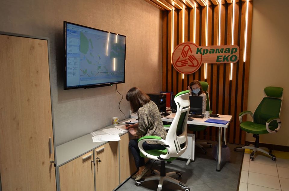 Куточок обладнаний сучасним екраном та програмою skyriver, завдяки якій кожен бажаючий може відстежити пересування та маршрут сміттєвозів.
