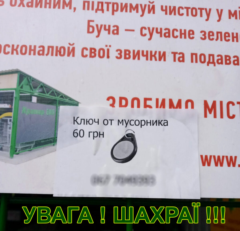 У населених пунктах Київської області – Буча, Гостомель та Ворзель – за останній рік силами «Крамар ЕКО» було зведено близько десяти новеньких сміттєвих майданчиків, доступ на які здійснюється за автоматизованою картковою системою. Така діяльність «Крамар ЕКО» по організації та упорядженню збору побутових відходів від населення не залишилась непоміченою нечистими на руку ділками, які в інтернеті та на вулицях міст за фіксовану суму пропонують населенню нібито дійсні ключі доступу.