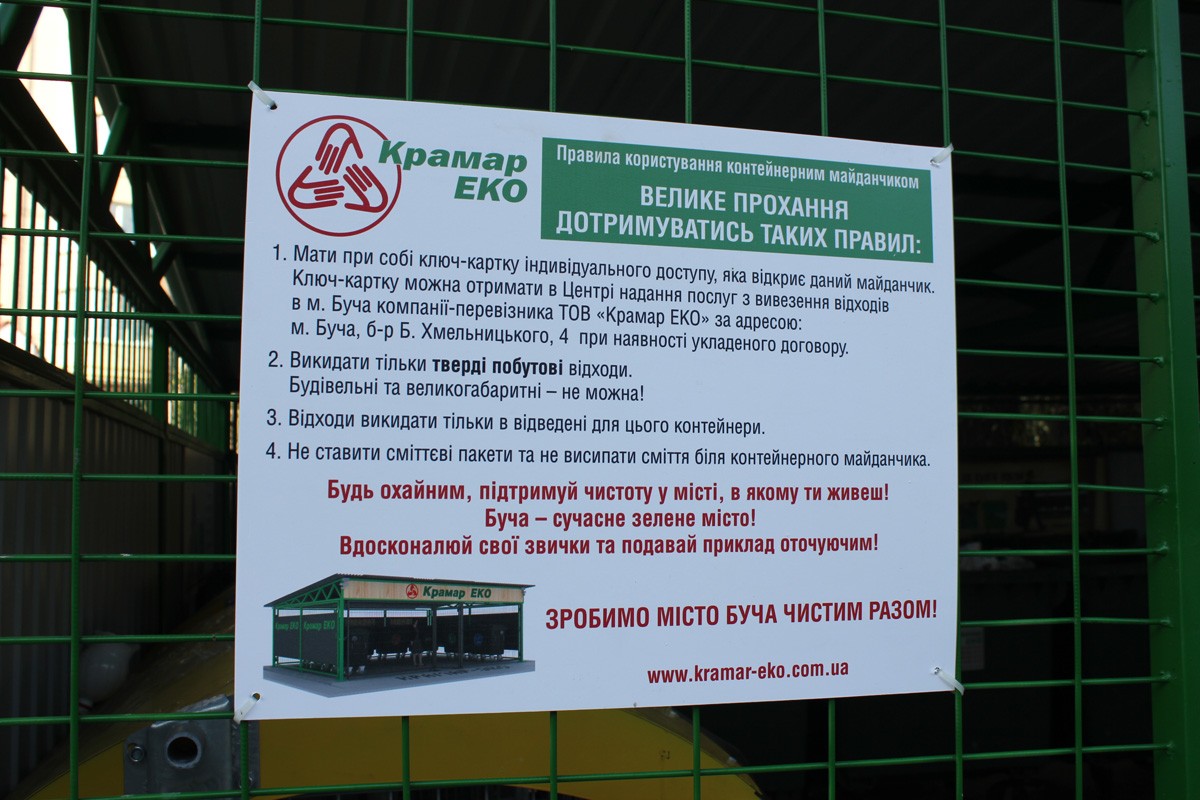 А пока есть время, советуем жителям Бучи получить карты доступа на контейнерные площадки в офисе «Крамар ЭКО» по ул. Богдана Хмельницкого, 4, офис 9.
